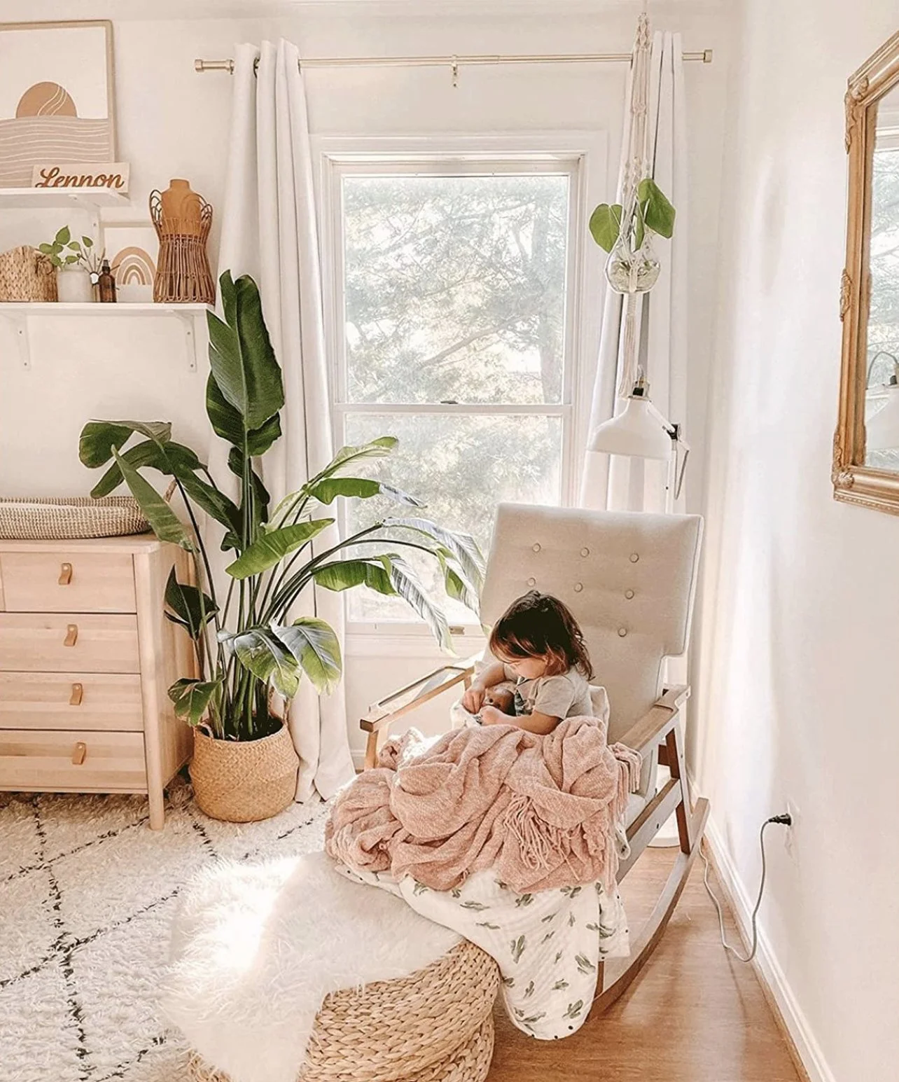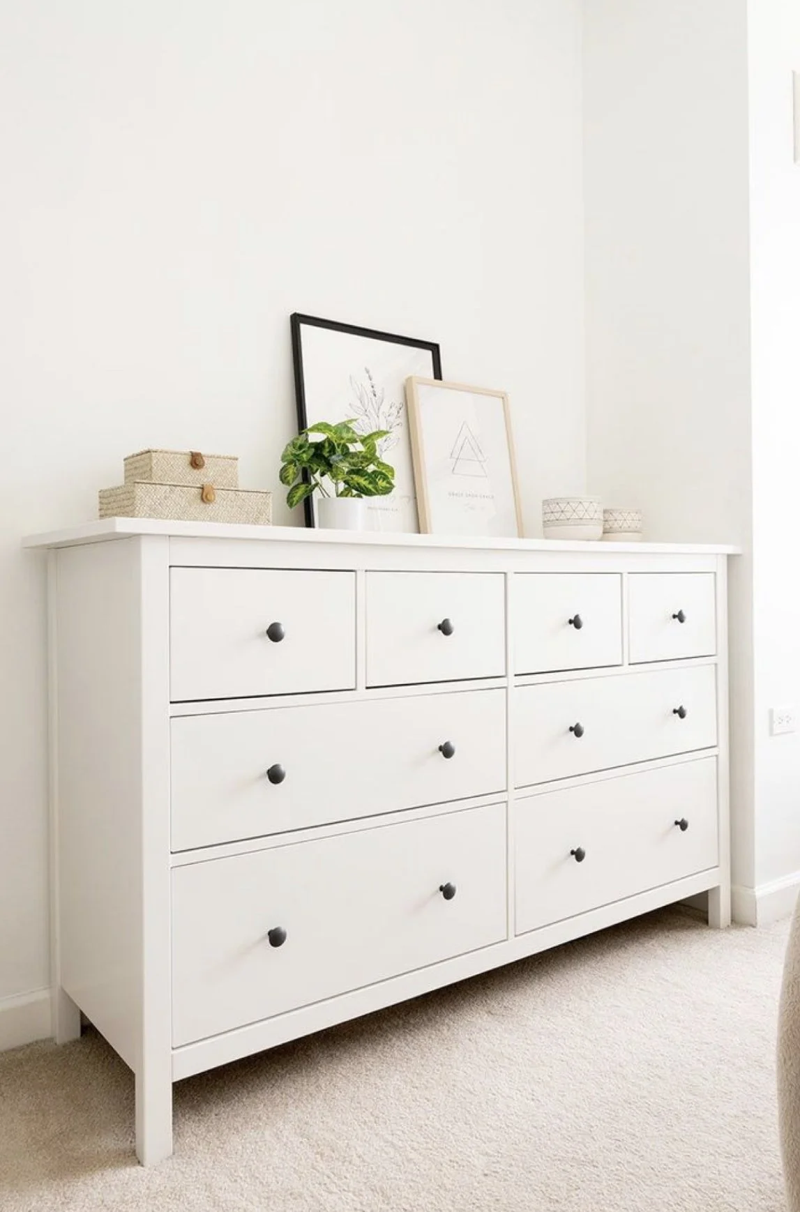 This is probably the most standard nursery dresser on the market! It has easily customizable to fit your nursery theme. I didn’t think I needed all the space in the beginning but ended up putting all her overstock diapers and wipes in the bottom drawers, and easy quick access items in the top 4 like onesies, socks, mittens, swaddles, etc. IKEA also sells great drawer organizers that are perfect!